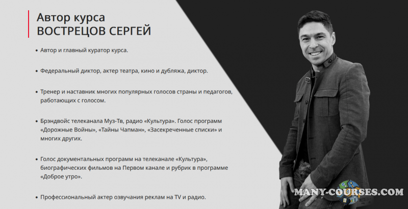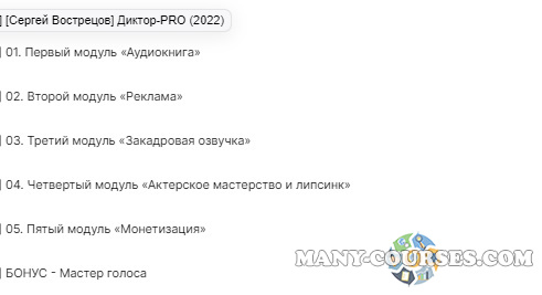 Вы находитесь на странице товара «Сергей Вострецов - Диктор-PRO. Tариф PRO», это материал 2022 года, который, мы надеемся, принесет вам пользу. Данный курс расположен на платформе «Облако Mail».Скриншоты с платформы на которой расположены материалы вы можете найти выше. В нашем магазине курсы доступны по самым выгодным ценам. Вы можете перейти на оригинальный продажник, после чего принять решение о покупке. Если бы вы покупали у самого автора, то данный курс вам обошелся 49000 рублей. Вы получаете этот курс, купив в нашем магазине MANY-COURSES.NET, с огромной скидкой, всего 290 рублей. Обучающий курс входит в рубрику «Бизнес, менеджмент, продажи / Музыка», вы можете поискать другие сливы курсов в этой рубрике. В нашем магазине Вы найдёте ещё много курсов от автора «Сергей Вострецов», достаточно ввести в поиск имя автора.