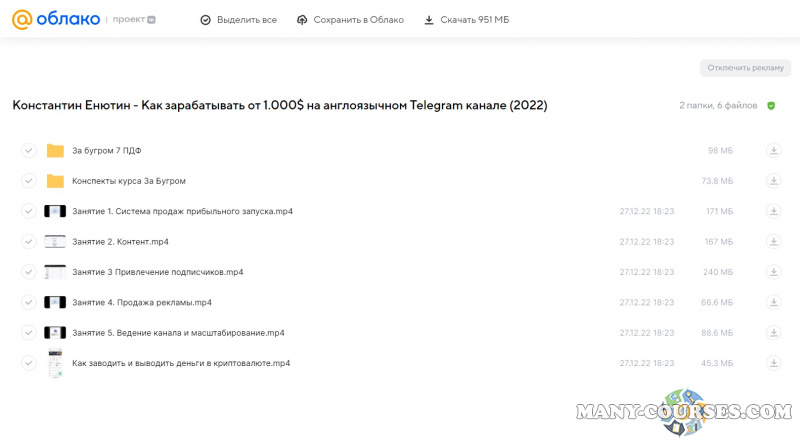 Вы находитесь на странице товара «Константин Енютин - Как зарабатывать от 1.000$ на англоязычном Telegram канале», это материал 2022 года, который, мы надеемся, принесет вам пользу. Данный курс расположен на платформе «Облако Mail».Скриншоты с платформы на которой расположены материалы вы можете найти выше. В нашем магазине курсы доступны по самым выгодным ценам. Вы получаете этот курс, купив в нашем магазине MANY-COURSES.NET, с огромной скидкой, всего 349 рублей. Обучающий курс входит в рубрику «Бизнес, менеджмент, продажи / Схемы заработка / Telegram», вы можете поискать другие сливы курсов в этой рубрике. В нашем магазине Вы найдёте ещё много курсов от автора «Константин Енютин», достаточно ввести в поиск имя автора.