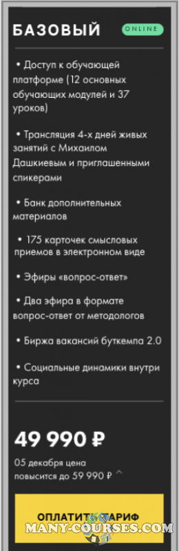 Вы находитесь на странице товара «Юниты / Михаил Дашкиев - Большой курс Методология», это материал 2022 года, который, мы надеемся, принесет вам пользу. Данный курс расположен на платформе «Яндекс Диск».Скриншоты с платформы на которой расположены материалы вы можете найти выше. В нашем магазине курсы доступны по самым выгодным ценам. Вы можете перейти на оригинальный продажник, после чего принять решение о покупке. Если бы вы покупали у самого автора, то данный курс вам обошелся 49990 рублей. Вы получаете этот курс, купив в нашем магазине MANY-COURSES.NET, с огромной скидкой, всего 500 рублей. Обучающий курс входит в рубрику «Бизнес, менеджмент, продажи», вы можете поискать другие сливы курсов в этой рубрике. В нашем магазине Вы найдёте ещё много курсов от автора «Михаил Дашкиев», достаточно ввести в поиск имя автора.
