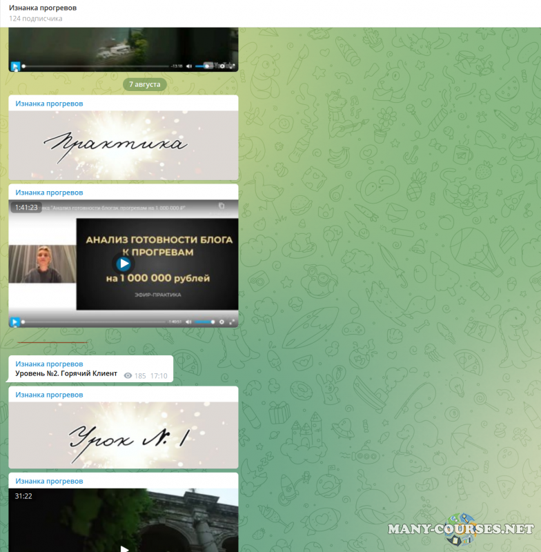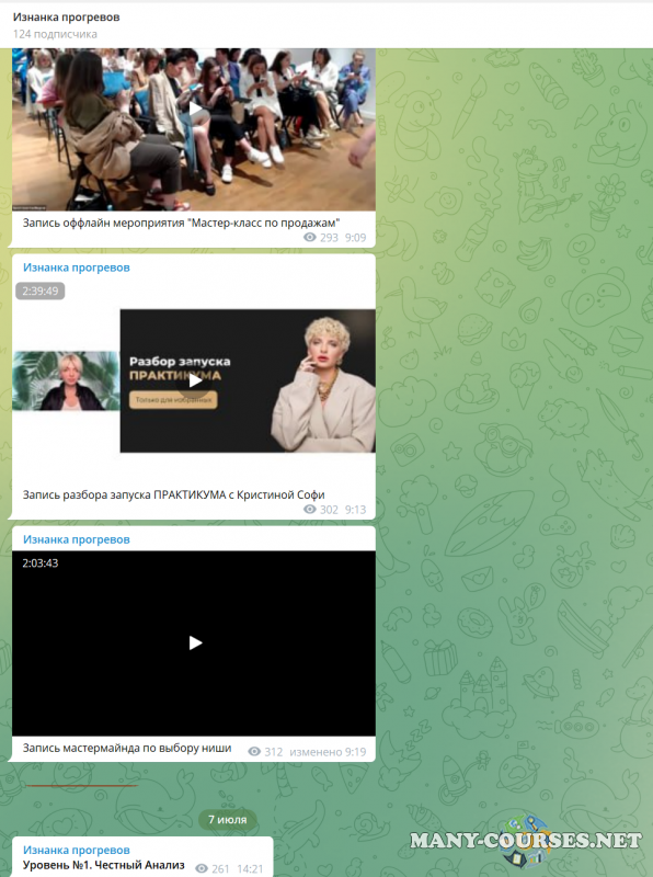 Вы находитесь на странице товара «Кристина Софи - Изнанка прогревов 5.0. Тариф Специалист по прогревам», это материал 2023 года, который, мы надеемся, принесет вам пользу. Данный курс расположен на платформе «Канал Telegram».Скриншоты с платформы на которой расположены материалы вы можете найти выше. В нашем магазине курсы доступны по самым выгодным ценам. Вы получаете этот курс, купив в нашем магазине MANY-COURSES.NET, с огромной скидкой, всего 1490 рублей. Обучающий курс входит в рубрику «Бизнес, менеджмент, продажи», вы можете поискать другие сливы курсов в этой рубрике. В нашем магазине Вы найдёте ещё много курсов от автора «Кристина Софи», достаточно ввести в поиск имя автора.