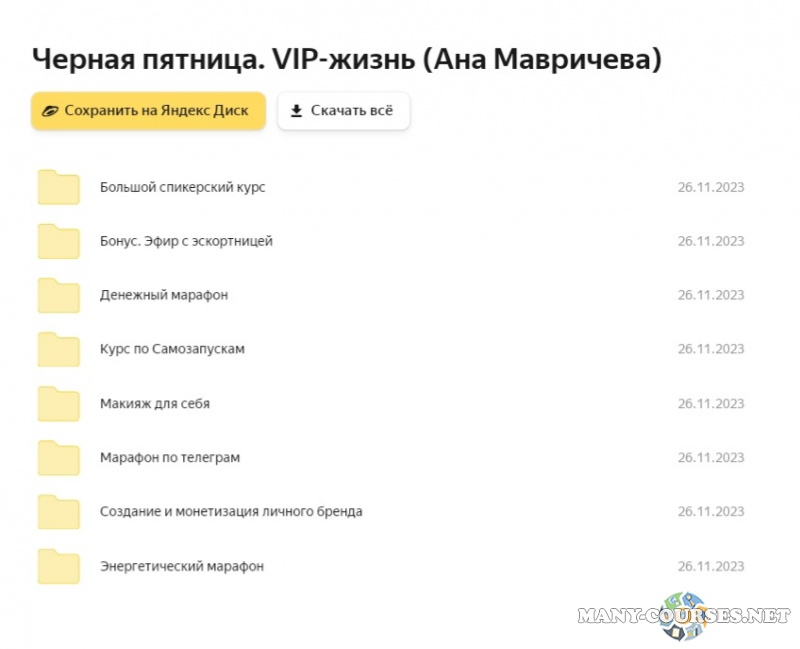 Вы находитесь на странице товара «Ана Мавричева - Черная пятница. VIP-жизнь», это материал 2023 года, который, мы надеемся, принесет вам пользу. Данный курс расположен на платформе «Яндекс Диск».Скриншоты с платформы на которой расположены материалы вы можете найти выше. В нашем магазине курсы доступны по самым выгодным ценам. Вы можете перейти на оригинальный продажник, после чего принять решение о покупке. Если бы вы покупали у самого автора, то данный курс вам обошелся 34900 рублей. Вы получаете этот курс, купив в нашем магазине MANY-COURSES.NET, с огромной скидкой, всего 790 рублей. Обучающий курс входит в рубрику «Бизнес, менеджмент, продажи», вы можете поискать другие сливы курсов в этой рубрике. В нашем магазине Вы найдёте ещё много курсов от автора «Ана Мавричева», достаточно ввести в поиск имя автора.