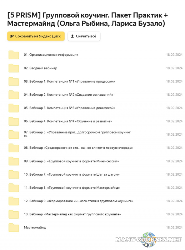 Вы находитесь на странице товара «5 PRISM / Ольга Рыбина, Лариса Бузало - Групповой коучинг. Пакет Практик + Мастермайнд», это материал 2023 года, который, мы надеемся, принесет вам пользу. Данный курс расположен на платформе «Яндекс Диск».Скриншоты с платформы на которой расположены материалы вы можете найти выше. В нашем магазине курсы доступны по самым выгодным ценам. Вы можете перейти на оригинальный продажник, после чего принять решение о покупке. Вы получаете этот курс, купив в нашем магазине MANY-COURSES.NET, с огромной скидкой, всего 1100 рублей. Обучающий курс входит в рубрику «Бизнес, менеджмент, продажи», вы можете поискать другие сливы курсов в этой рубрике. В нашем магазине Вы найдёте ещё много курсов от автора «Ольга Рыбина, Лариса Бузало», достаточно ввести в поиск имя автора.