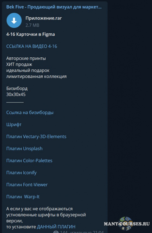 Вы находитесь на странице товара «Bek Five - Продающий визуал для маркетплейсов. (Тариф Всё сам)», это материал 2021 года, который, мы надеемся, принесет вам пользу. Данный курс расположен на платформе «Канал Telegram».Скриншоты с платформы на которой расположены материалы вы можете найти выше. В нашем магазине курсы доступны по самым выгодным ценам. Вы можете перейти на оригинальный продажник, после чего принять решение о покупке. Если бы вы покупали у самого автора, то данный курс вам обошелся 4990 рублей. Вы получаете этот курс, купив в нашем магазине MANY-COURSES.NET, с огромной скидкой, всего 349 рублей. Обучающий курс входит в рубрику «Бизнес, менеджмент, продажи», вы можете поискать другие сливы курсов в этой рубрике. В нашем магазине Вы найдёте ещё много курсов от автора «Бек Якубов», достаточно ввести в поиск имя автора.