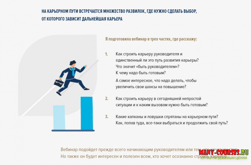 Вебинар подойдет прежде всего начинающим руководителям или тем, кто хочет им стать. Но также он будет интересен и полезен всем, кто хочет осознанно строить карьеру.