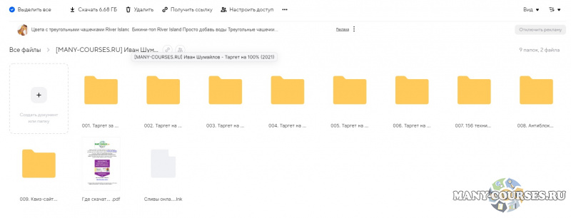 Вы находитесь на странице товара «Иван Шумайлов - Таргет на 100%», это материал 2021 года, который, мы надеемся, принесет вам пользу. Данный курс расположен на платформе «Облако Mail».Скриншоты с платформы на которой расположены материалы вы можете найти выше. В нашем магазине курсы доступны по самым выгодным ценам. Если бы вы покупали у самого автора, то данный курс вам обошелся 4990 рублей. Вы получаете этот курс, купив в нашем магазине MANY-COURSES.NET, с огромной скидкой, всего 100 рублей. Обучающий курс входит в рубрику «Реклама и маркетинг / SEO и SMM», вы можете поискать другие сливы курсов в этой рубрике. В нашем магазине Вы найдёте ещё много курсов от автора «Иван Шумайлов», достаточно ввести в поиск имя автора.