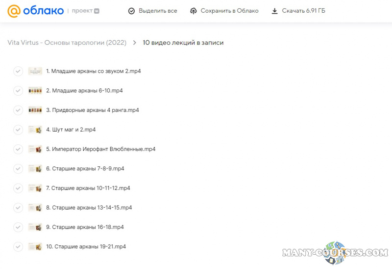 Вы находитесь на странице товара «Vita Virtus - Основы тарологии», это материал 2022 года, который, мы надеемся, принесет вам пользу. Данный курс расположен на платформе «Облако Mail».Скриншоты с платформы на которой расположены материалы вы можете найти выше. В нашем магазине курсы доступны по самым выгодным ценам. Вы получаете этот курс, купив в нашем магазине MANY-COURSES.NET, с огромной скидкой, всего 690 рублей. Обучающий курс входит в рубрику «Эзотерика и оккультизм», вы можете поискать другие сливы курсов в этой рубрике. В нашем магазине Вы найдёте ещё много курсов от автора «Vita Virtus», достаточно ввести в поиск имя автора.