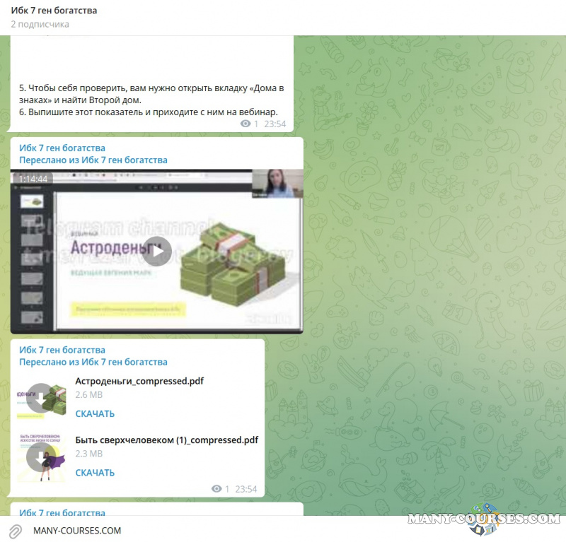Вы находитесь на странице товара «Sorvette - ИВБ 7: Ген богатства. Тариф Расширенный», это материал 2022 года, который, мы надеемся, принесет вам пользу. Данный курс расположен на платформе «Канал Telegram».Скриншоты с платформы на которой расположены материалы вы можете найти выше. В нашем магазине курсы доступны по самым выгодным ценам. Вы можете перейти на оригинальный продажник, после чего принять решение о покупке. Если бы вы покупали у самого автора, то данный курс вам обошелся 57990 рублей. Вы получаете этот курс, купив в нашем магазине MANY-COURSES.NET, с огромной скидкой, всего 1390 рублей. Обучающий курс входит в рубрику «Эзотерика и оккультизм / Психология», вы можете поискать другие сливы курсов в этой рубрике. В нашем магазине Вы найдёте ещё много курсов от автора «Sorvette», достаточно ввести в поиск имя автора.