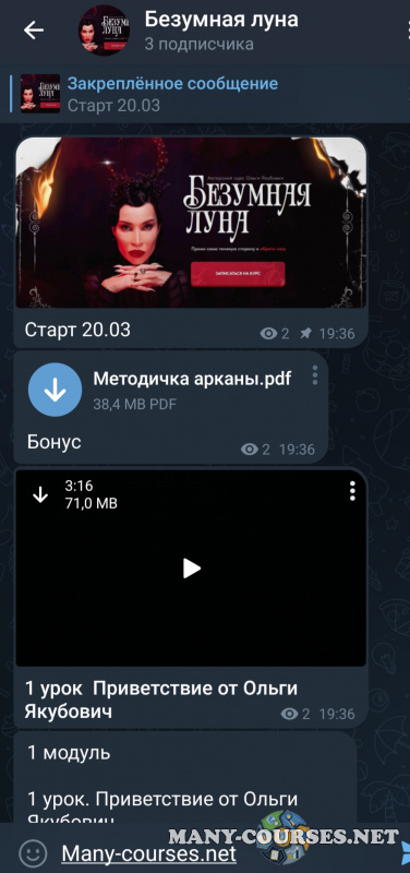 Вы находитесь на странице товара «yakubowitcholga / Ольга Якубович - Безумная луна. Тариф Соло (2024)», это материал 2024 года, который, мы надеемся, принесет вам пользу. Данный курс расположен на платформе «Канал Telegram».Скриншоты с платформы на которой расположены материалы вы можете найти выше. В нашем магазине курсы доступны по самым выгодным ценам. Вы получаете этот курс, купив в нашем магазине MANY-COURSES.NET, с огромной скидкой, всего 1990 рублей. Обучающий курс входит в рубрику «Эзотерика и оккультизм», вы можете поискать другие сливы курсов в этой рубрике. В нашем магазине Вы найдёте ещё много курсов от автора «Ольга Якубович», достаточно ввести в поиск имя автора.