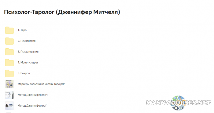 Вы находитесь на странице товара «Дженнифер Митчелл - Программа профессиональной переподготовки на психолога-таролога. Тариф Онлайн + монетизация», это материал 2022 года, который, мы надеемся, принесет вам пользу. Данный курс расположен на платформе «Яндекс Диск».Скриншоты с платформы на которой расположены материалы вы можете найти выше. В нашем магазине курсы доступны по самым выгодным ценам. Вы можете перейти на оригинальный продажник, после чего принять решение о покупке. Вы получаете этот курс, купив в нашем магазине MANY-COURSES.NET, с огромной скидкой, всего 1150 рублей. Обучающий курс входит в рубрику «Психология», вы можете поискать другие сливы курсов в этой рубрике. В нашем магазине Вы найдёте ещё много курсов от автора «Дженнифер Митчелл», достаточно ввести в поиск имя автора.
