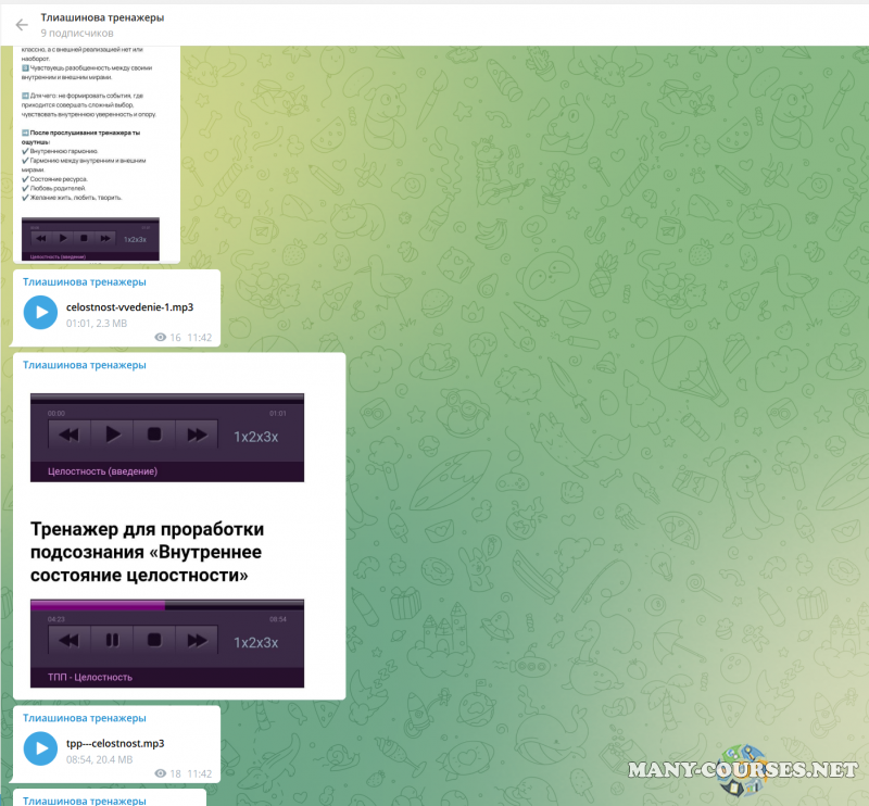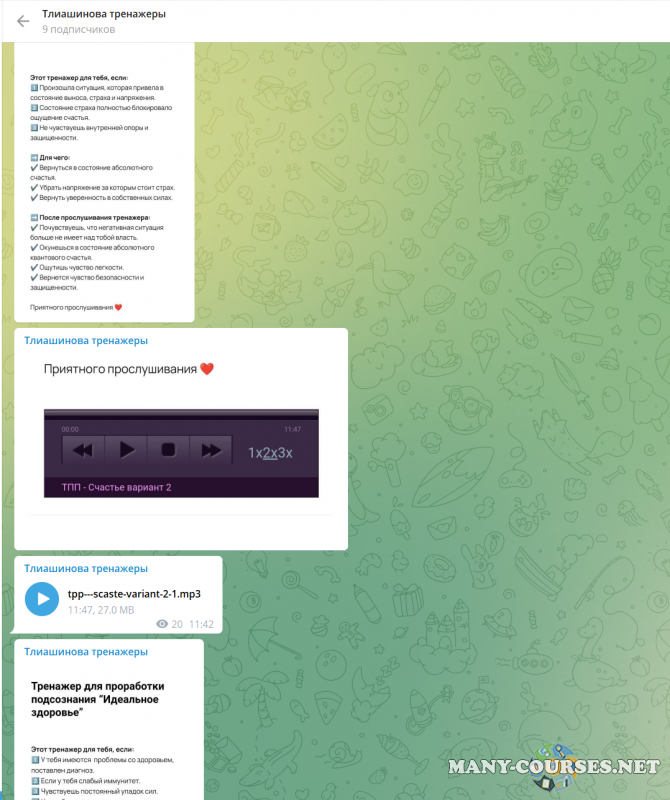 Вы находитесь на странице товара «Инна Тлиашинова - Набор тренажеров», это материал 2023 года, который, мы надеемся, принесет вам пользу. Данный курс расположен на платформе «Канал Telegram».Скриншоты с платформы на которой расположены материалы вы можете найти выше. В нашем магазине курсы доступны по самым выгодным ценам. Вы получаете этот курс, купив в нашем магазине MANY-COURSES.NET, с огромной скидкой, всего 1200 рублей. Обучающий курс входит в рубрику «Саморазвитие и мотивация / Эзотерика и оккультизм / Психология», вы можете поискать другие сливы курсов в этой рубрике. В нашем магазине Вы найдёте ещё много курсов от автора «Инна Тлиашинова», достаточно ввести в поиск имя автора.