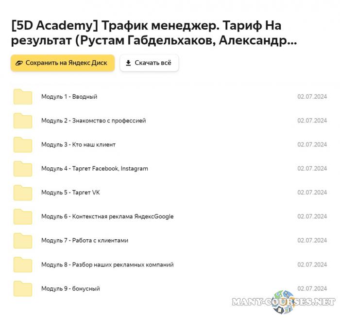 Вы находитесь на странице товара «5D Academy / Рустам Габдельхаков, Александр Скворцов - Трафик менеджер. С 0 до первого клиента», это материал 2024 года, который, мы надеемся, принесет вам пользу. Данный курс расположен на платформе «Яндекс Диск».Скриншоты с платформы на которой расположены материалы вы можете найти выше. В нашем магазине курсы доступны по самым выгодным ценам. Вы получаете этот курс, купив в нашем магазине MANY-COURSES.NET, с огромной скидкой, всего 1990 рублей. Обучающий курс входит в рубрику «SEO и SMM / Вконтакте (VK) / Facebook / Реклама и маркетинг», вы можете поискать другие сливы курсов в этой рубрике. В нашем магазине Вы найдёте ещё много курсов от автора «Рустам Габдельхаков, Александр Скворцов», достаточно ввести в поиск имя автора.
