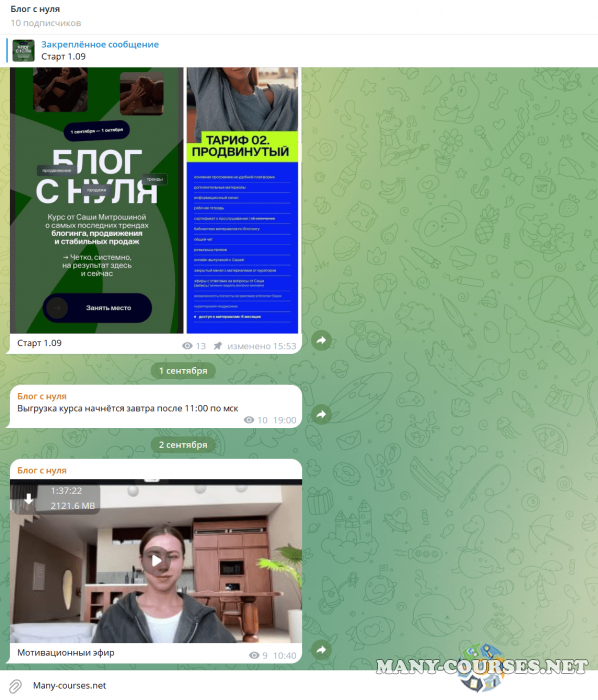 Вы находитесь на странице товара «Александра Митрошина - Блог с нуля. Тариф 02. Продвинутый (2024)», это материал 2024 года, который, мы надеемся, принесет вам пользу. Данный курс расположен на платформе «Канал Telegram».Скриншоты с платформы на которой расположены материалы вы можете найти выше. В нашем магазине курсы доступны по самым выгодным ценам. Вы можете перейти на оригинальный продажник, после чего принять решение о покупке. Если бы вы покупали у самого автора, то данный курс вам обошелся 44900 рублей. Вы получаете этот курс, купив в нашем магазине MANY-COURSES.NET, с огромной скидкой, всего 1200 рублей. Обучающий курс входит в рубрику «SEO и SMM / Бизнес, менеджмент, продажи», вы можете поискать другие сливы курсов в этой рубрике. В нашем магазине Вы найдёте ещё много курсов от автора «Александра Митрошина», достаточно ввести в поиск имя автора.