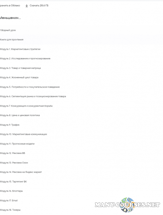 Вы находитесь на странице товара «Елена Меньшенина - Маркетолог (2024)», это материал 2024 года, который, мы надеемся, принесет вам пользу. Данный курс расположен на платформе «Облако Mail».Скриншоты с платформы на которой расположены материалы вы можете найти выше. В нашем магазине курсы доступны по самым выгодным ценам. Вы можете перейти на оригинальный продажник, после чего принять решение о покупке. Если бы вы покупали у самого автора, то данный курс вам обошелся 80000 рублей. Вы получаете этот курс, купив в нашем магазине MANY-COURSES.NET, с огромной скидкой, всего 400 рублей. Обучающий курс входит в рубрику «SEO и SMM / Реклама и маркетинг», вы можете поискать другие сливы курсов в этой рубрике. В нашем магазине Вы найдёте ещё много курсов от автора «Елена Меньшенина», достаточно ввести в поиск имя автора.