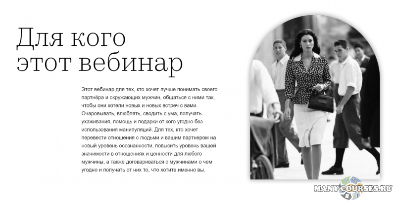 Этот вебинар для тех, кто хочет лучше понимать своего партнёра и окружающих мужчин, общаться с ними так, чтобы они хотели новых и новых встреч с вами. Очаровывать, влюблять, сводить с ума, получать ухаживания, помощь и подарки от кого угодно без использования манипуляций. Для тех, кто хочет перевести отношения с людьми и вашим партнером на новый уровень осознанности, повысить уровень вашей значимости в отношениях и ценности для любого мужчины, а также договариваться с мужчинами о чем угодно и получать от них то, что хотите именно вы.