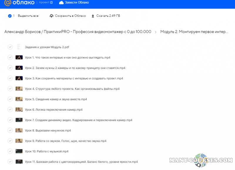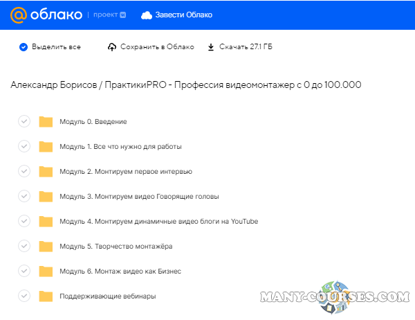Вы находитесь на странице товара «Александр Борисов / ПрактикиPRO - Профессия видеомонтажер с 0 до 100.000», это материал 2021 года, который, мы надеемся, принесет вам пользу. Данный курс расположен на платформе «Облако Mail».Скриншоты с платформы на которой расположены материалы вы можете найти выше. В нашем магазине курсы доступны по самым выгодным ценам. Вы получаете этот курс, купив в нашем магазине MANY-COURSES.NET, с огромной скидкой, всего 990 рублей. Обучающий курс входит в рубрику «Видео и фото», вы можете поискать другие сливы курсов в этой рубрике. В нашем магазине Вы найдёте ещё много курсов от автора «Александр Борисов», достаточно ввести в поиск имя автора.
