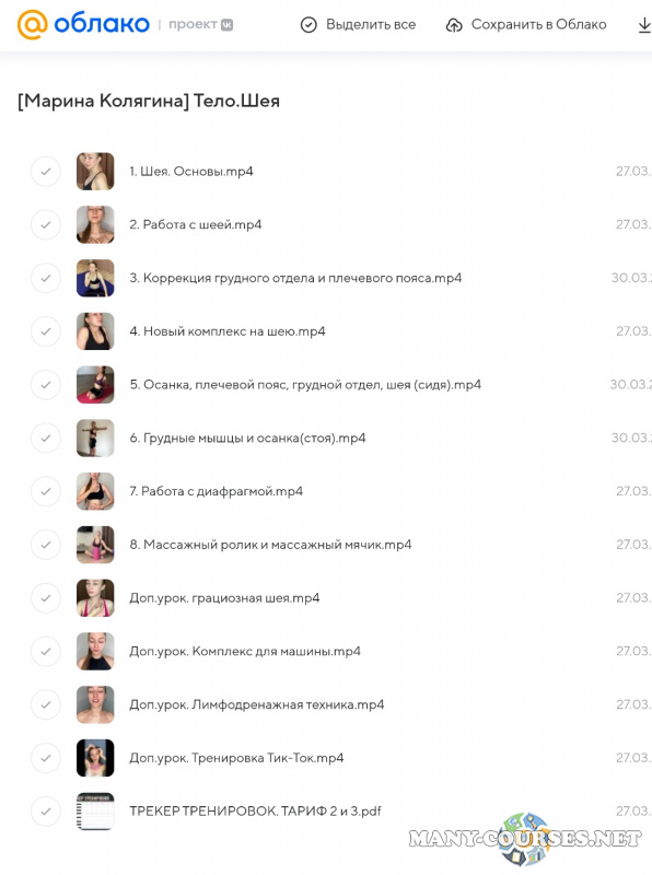 Вы находитесь на странице товара «Марина Колягина - Тело. Шея. Тариф Грация», это материал 2023 года, который, мы надеемся, принесет вам пользу. Данный курс расположен на платформе «Облако Mail».Скриншоты с платформы на которой расположены материалы вы можете найти выше. В нашем магазине курсы доступны по самым выгодным ценам. Если бы вы покупали у самого автора, то данный курс вам обошелся 8990 рублей. Вы получаете этот курс, купив в нашем магазине MANY-COURSES.NET, с огромной скидкой, всего 410 рублей. Обучающий курс входит в рубрику «Здоровье и Спорт», вы можете поискать другие сливы курсов в этой рубрике. В нашем магазине Вы найдёте ещё много курсов от автора «Марина Колягина», достаточно ввести в поиск имя автора.