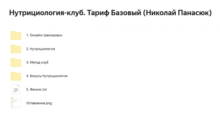 Вы находитесь на странице товара «Николай Панасюк - Нутрициология PRO. Тариф Любитель», это материал 2023 года, который, мы надеемся, принесет вам пользу. Данный курс расположен на платформе «Яндекс Диск».Скриншоты с платформы на которой расположены материалы вы можете найти выше. В нашем магазине курсы доступны по самым выгодным ценам. Вы можете перейти на оригинальный продажник, после чего принять решение о покупке. Вы получаете этот курс, купив в нашем магазине MANY-COURSES.NET, с огромной скидкой, всего 790 рублей. Обучающий курс входит в рубрику «Здоровье и Спорт», вы можете поискать другие сливы курсов в этой рубрике. В нашем магазине Вы найдёте ещё много курсов от автора «Николай Панасюк», достаточно ввести в поиск имя автора.